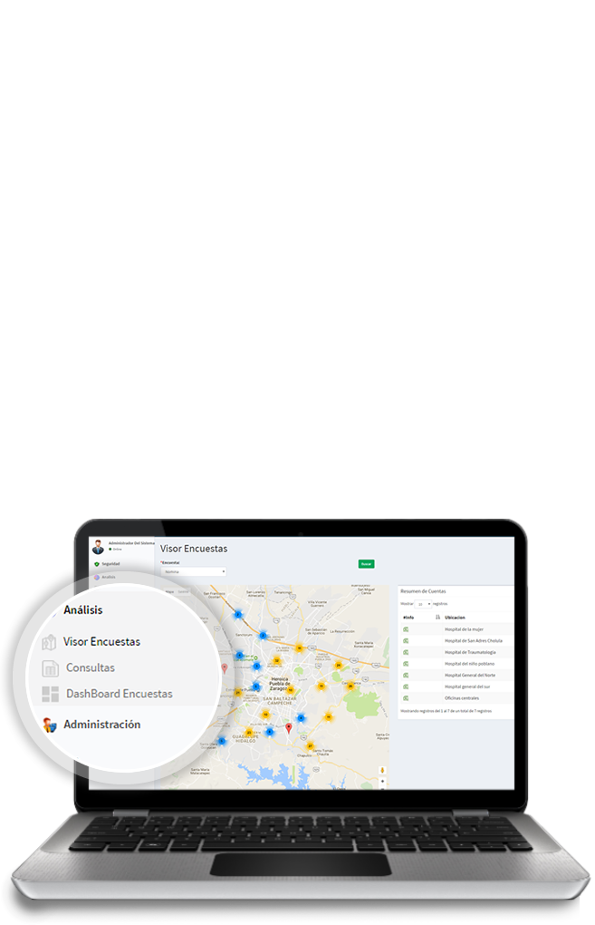 Encuestas dinámicas de sus servicios que permiten detectar las necesitades, mediante la explotación de indicadores de calidad.